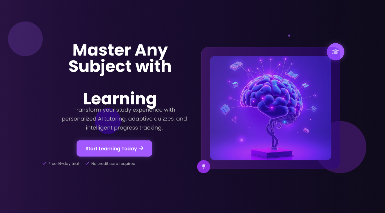 Technologies: React.js, Tailwind CSS, AI Integration • Built interactive learning platform enabling students to ask questions and study independently • Deployed Study Area features: to -do list, Pomodoro timer, note - taking, focus sounds, and calendar • Developed responsive UI improving productivity and time management across all devices